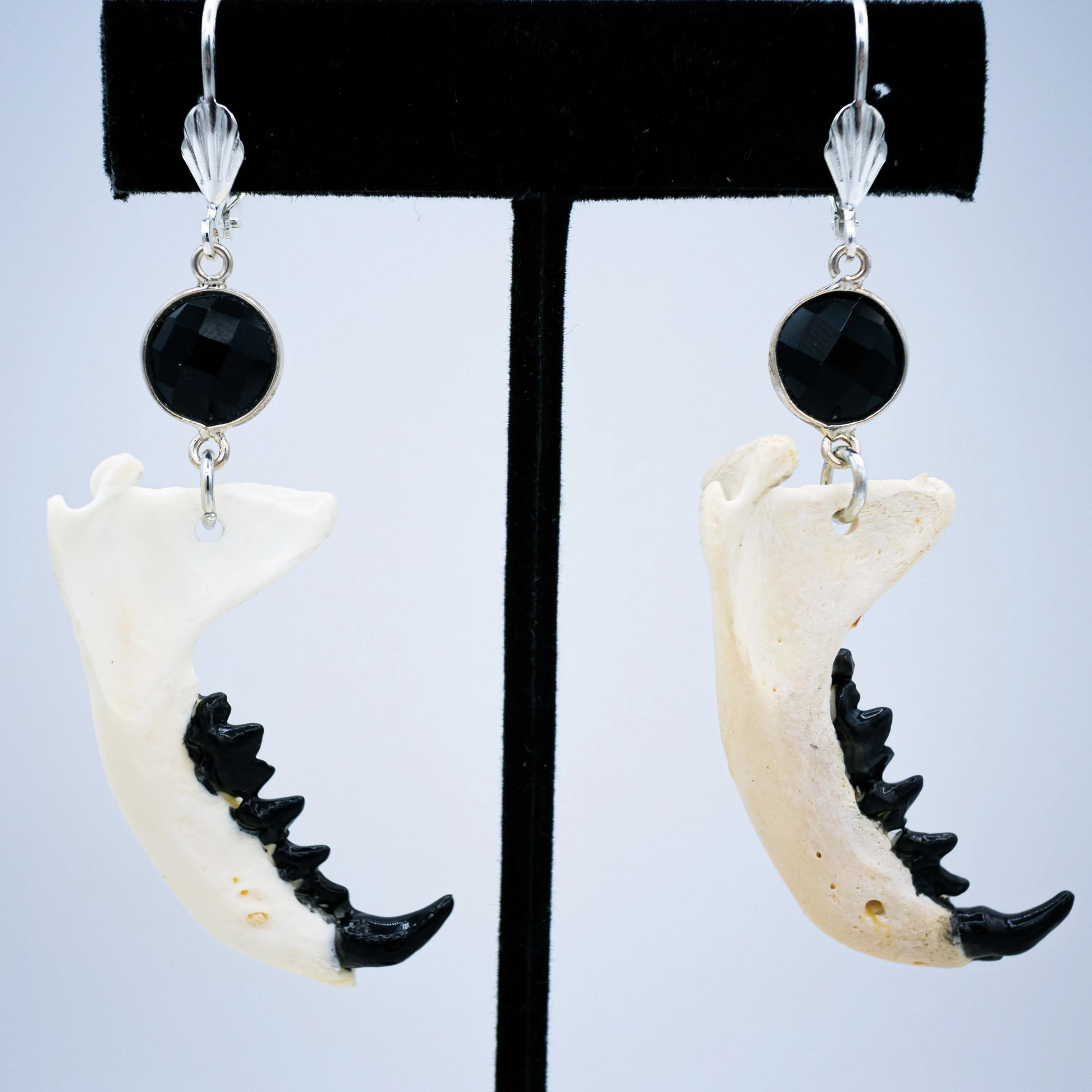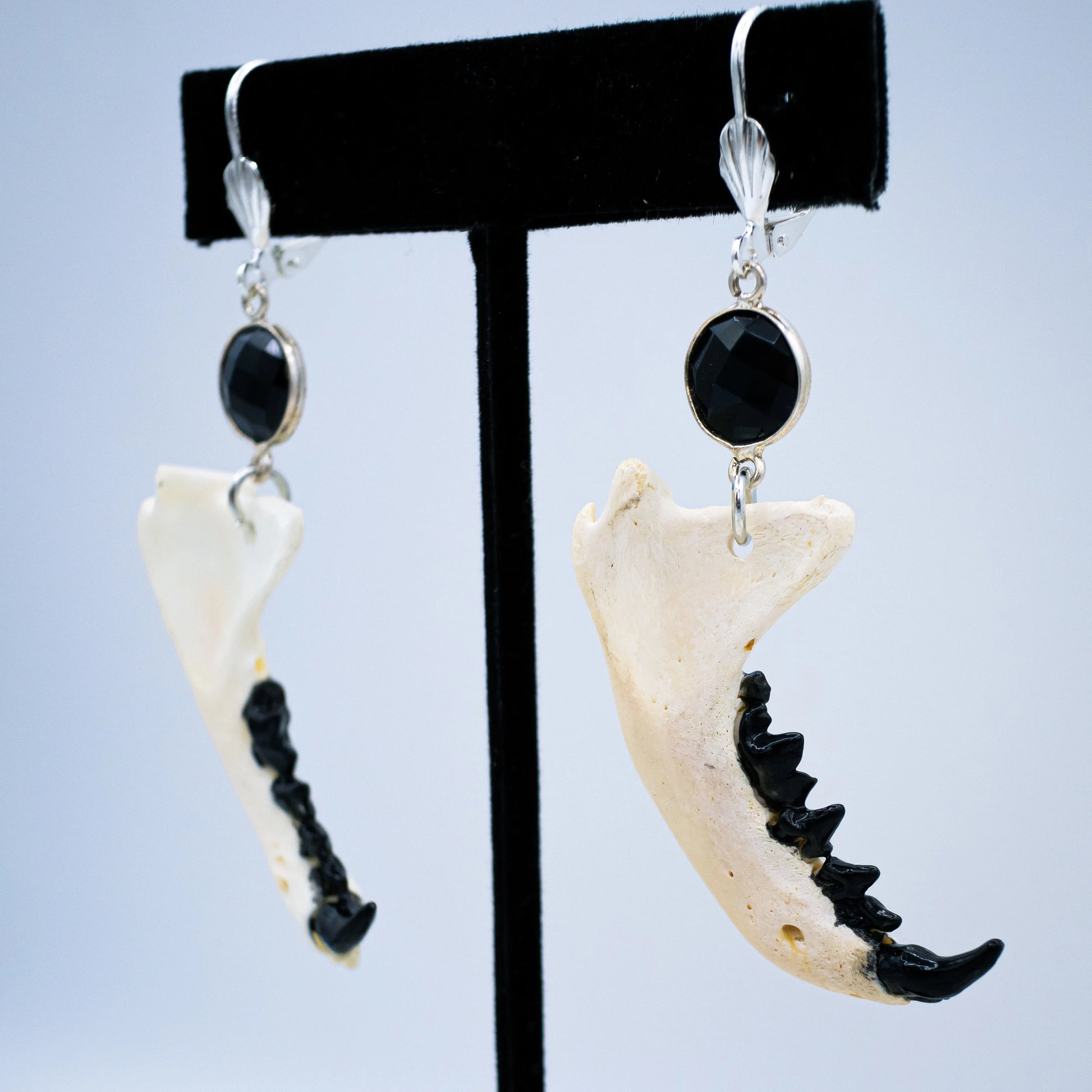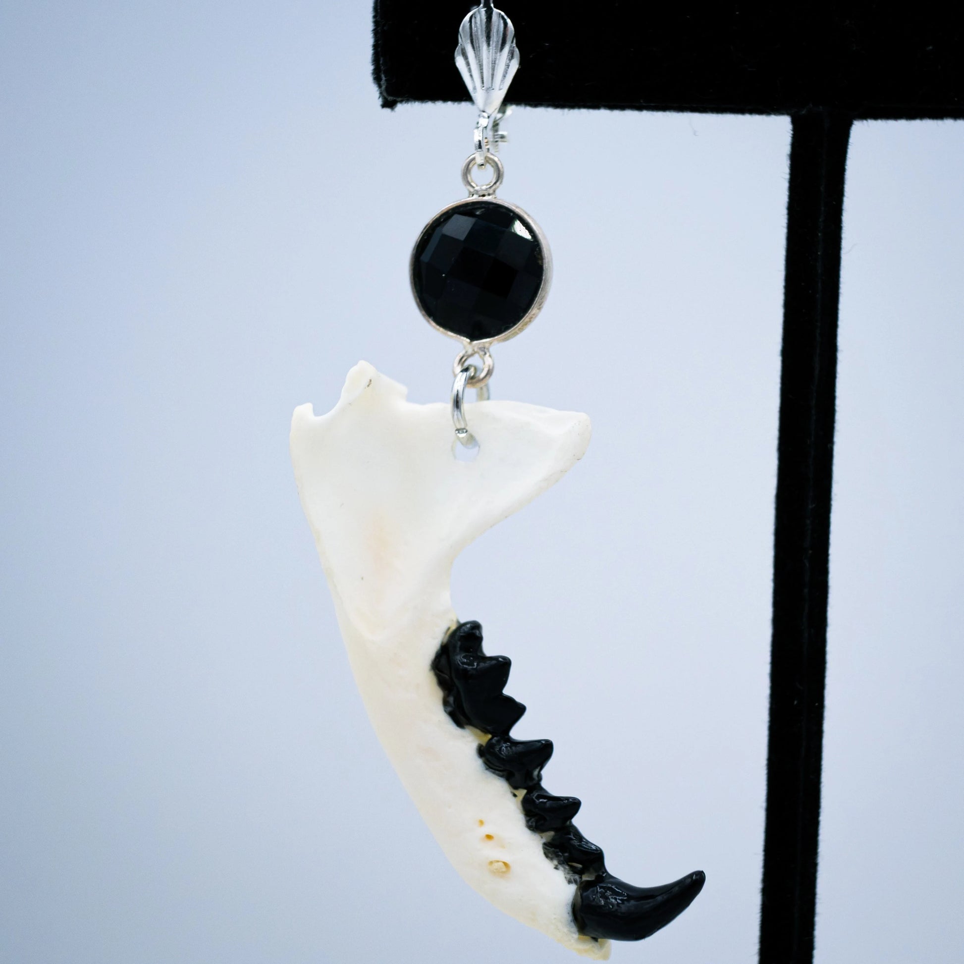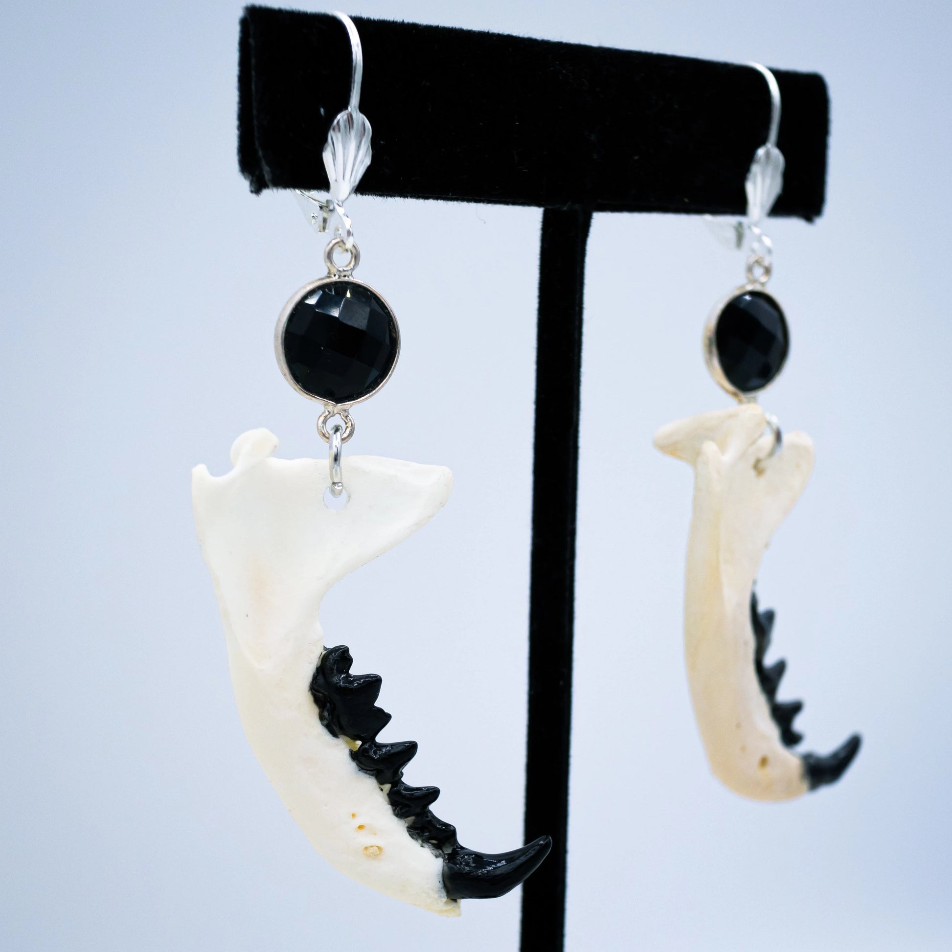 From Sterling Silver onyx drops hang authentic mink jaws with black painted teeth