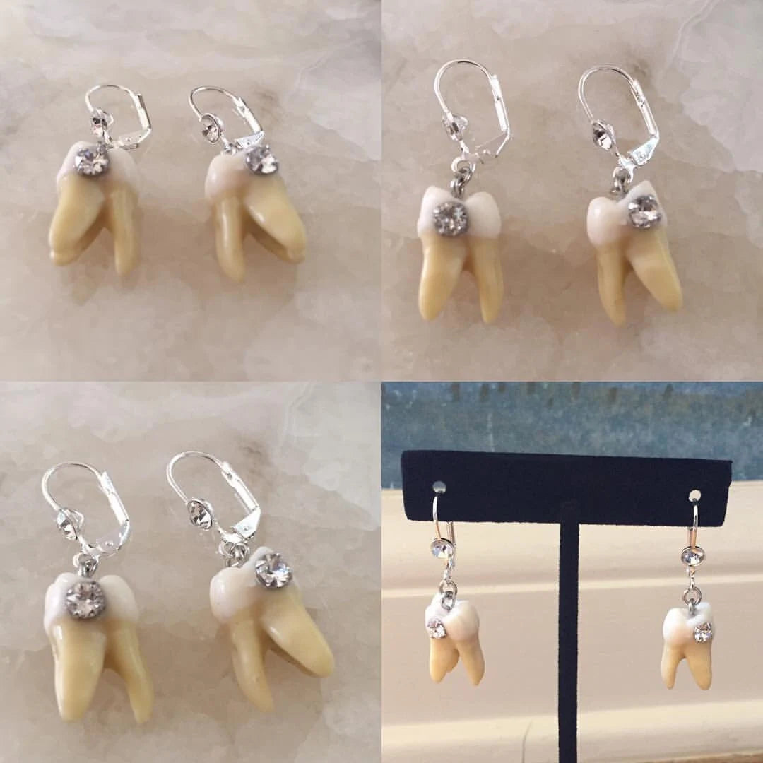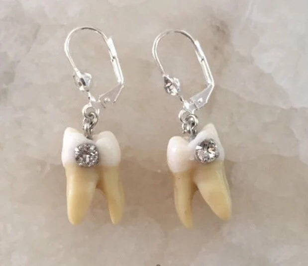 Authentic Human Molars with crystal Cavity’s hang from matching earrings