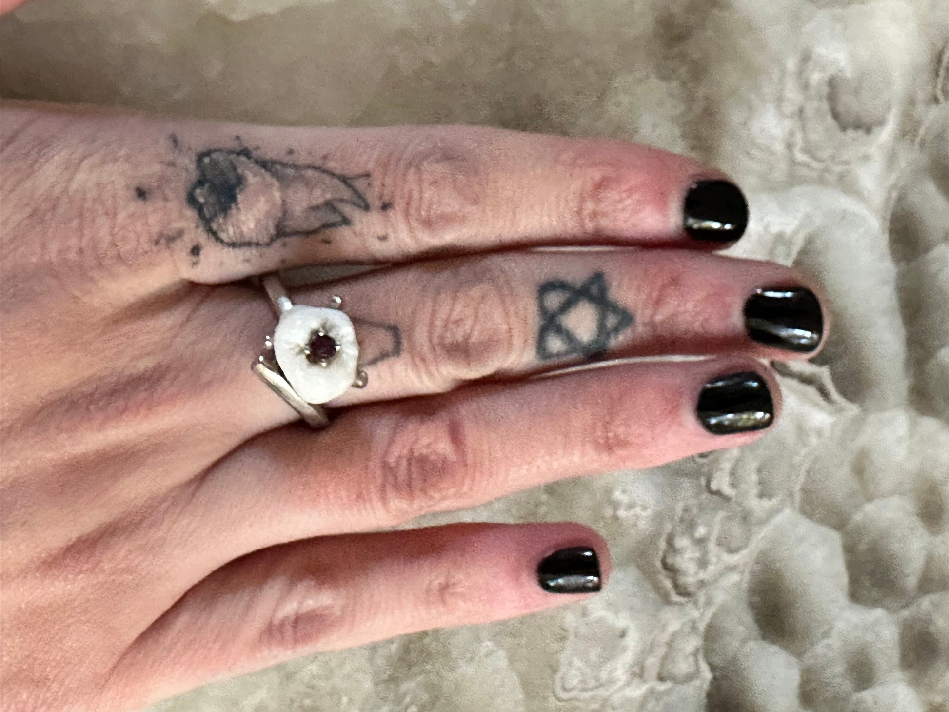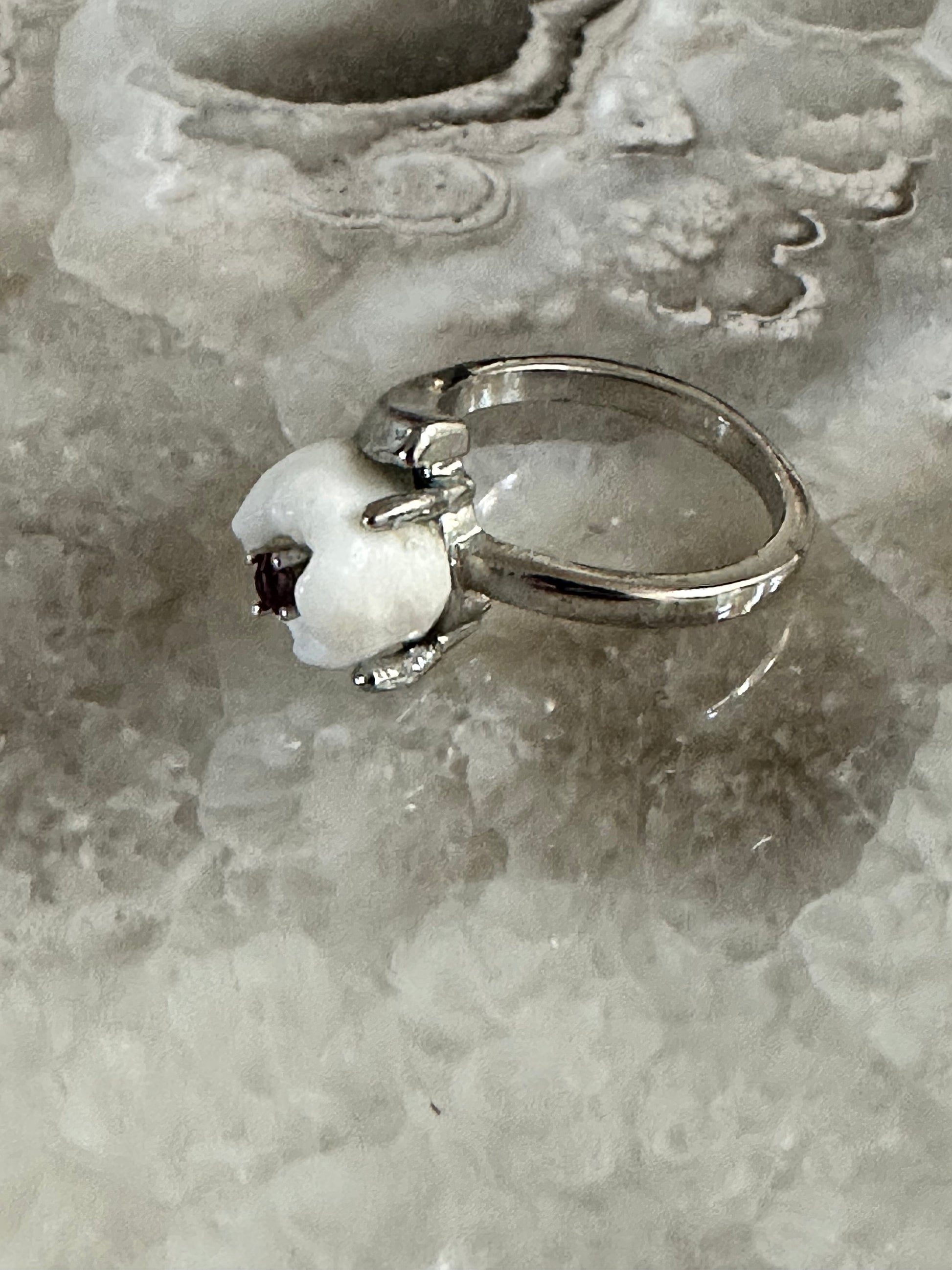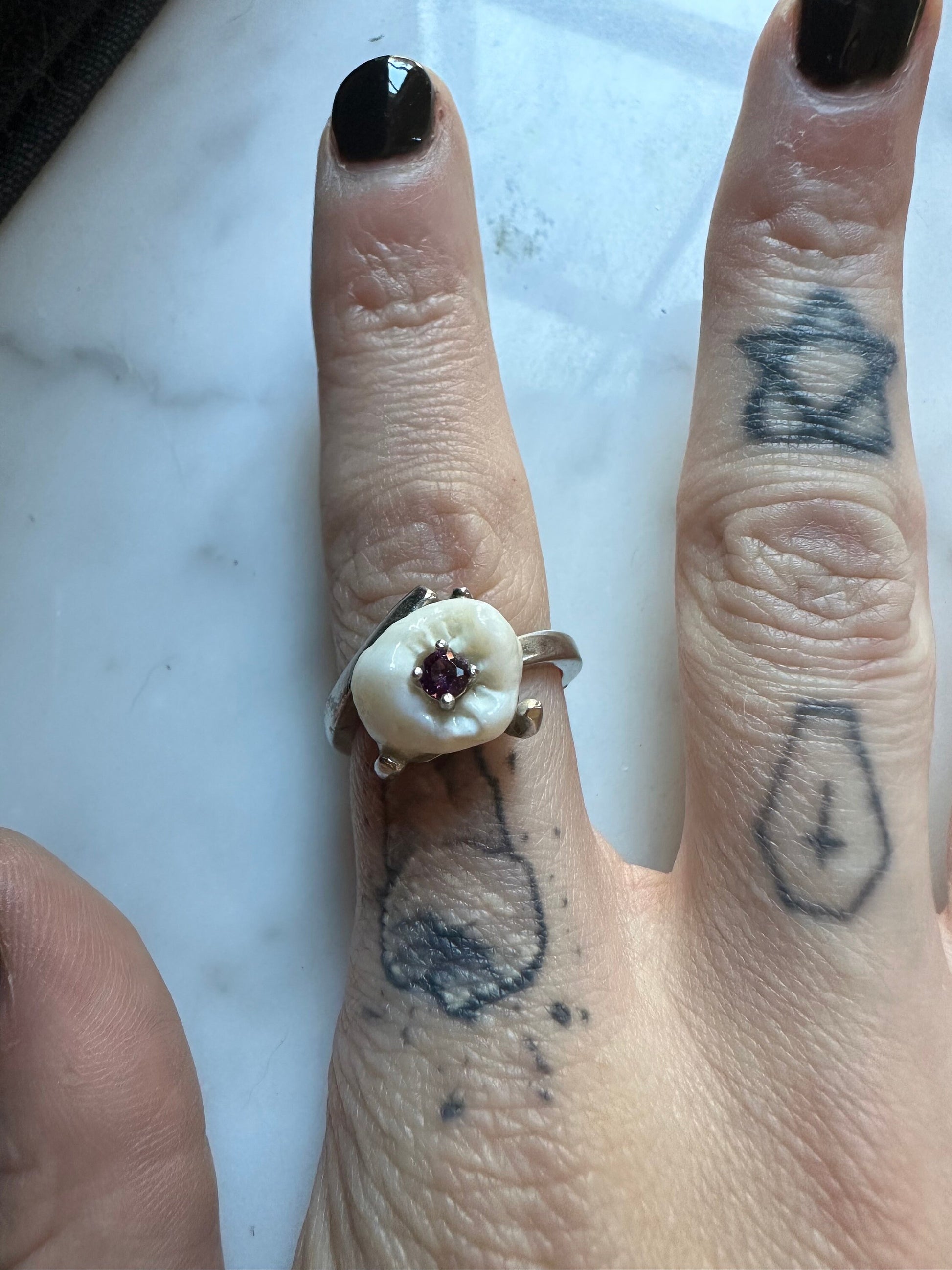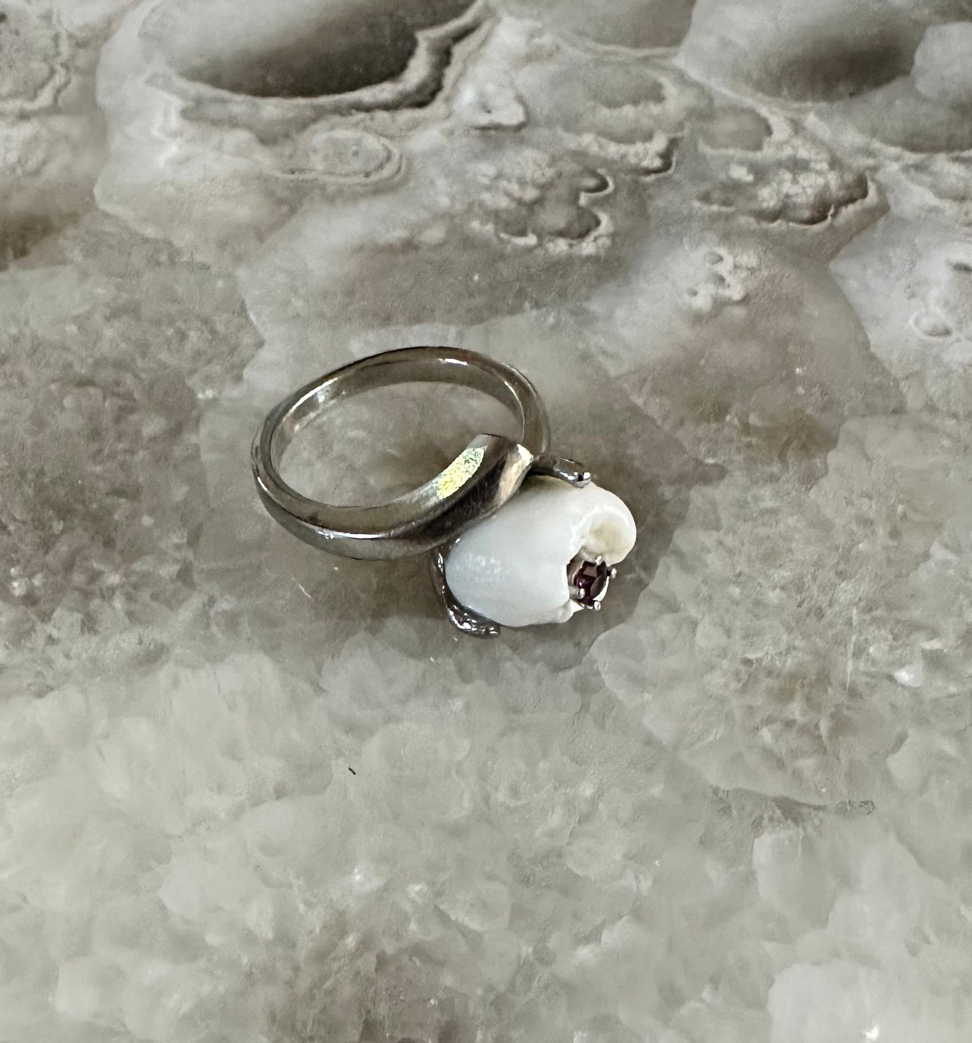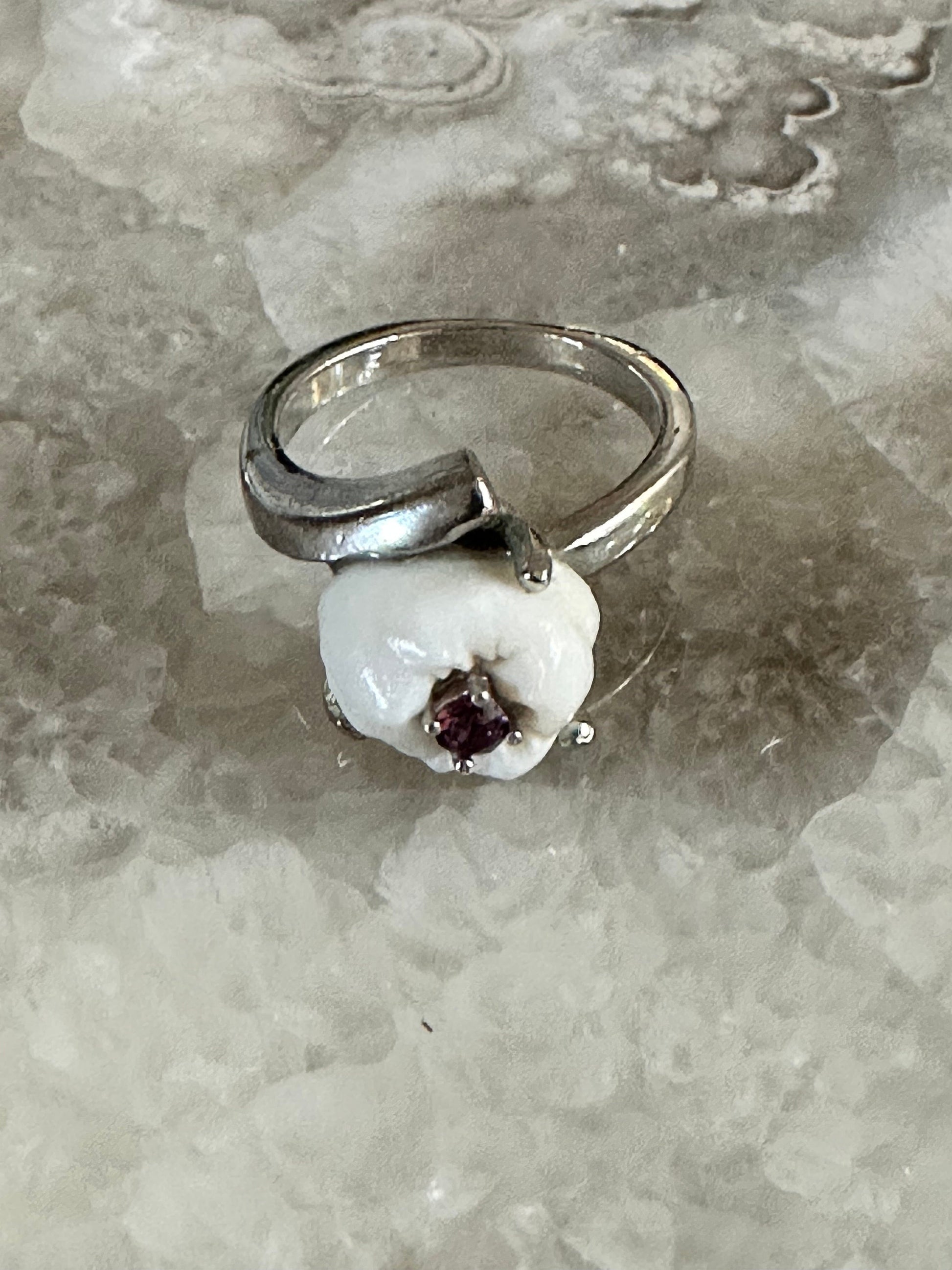 This authentic human molar with a beautiful stone cavity rests within a gorgeous silver setting size 8