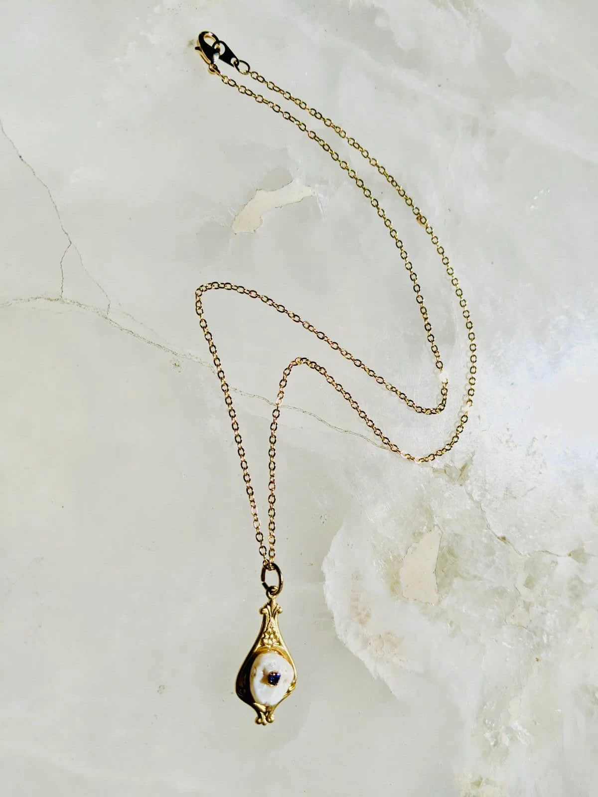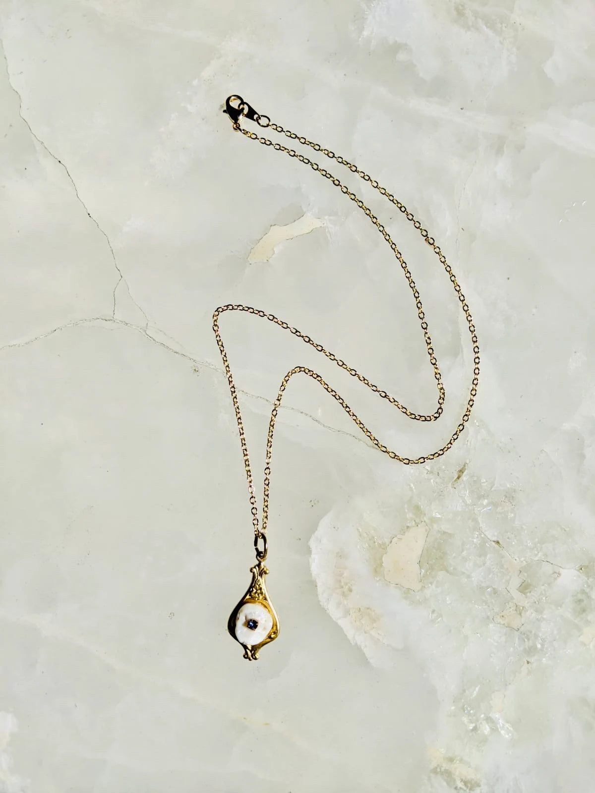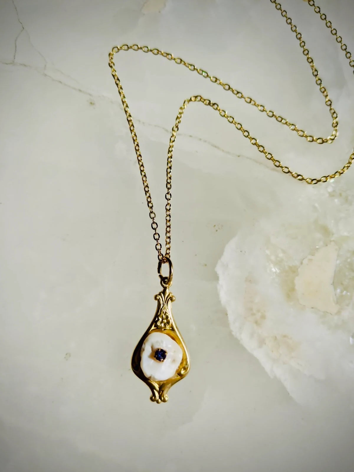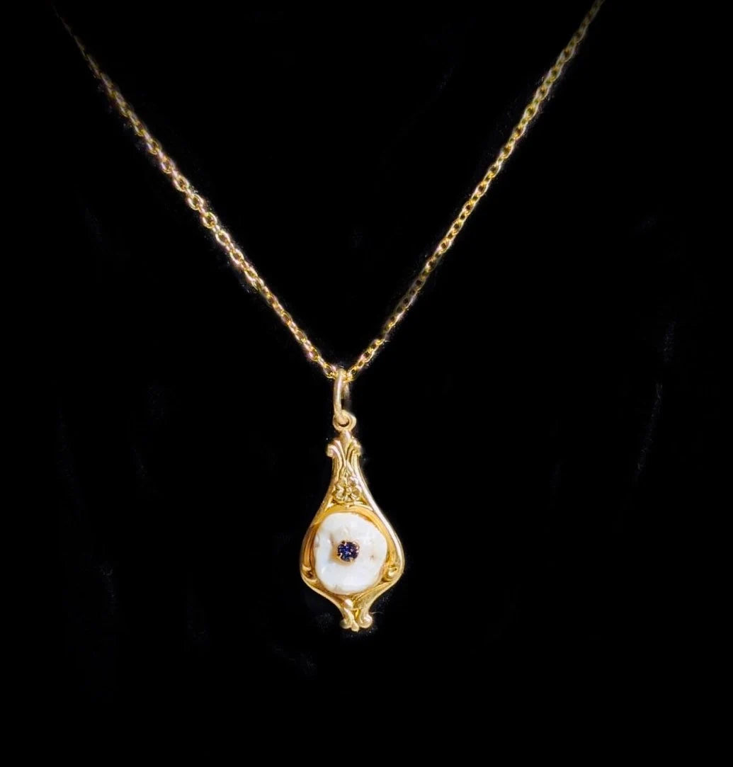 This authentic human molar with a purple crystal cavity is set in a beautiful pendant as a necklace. Come in silver or gold.