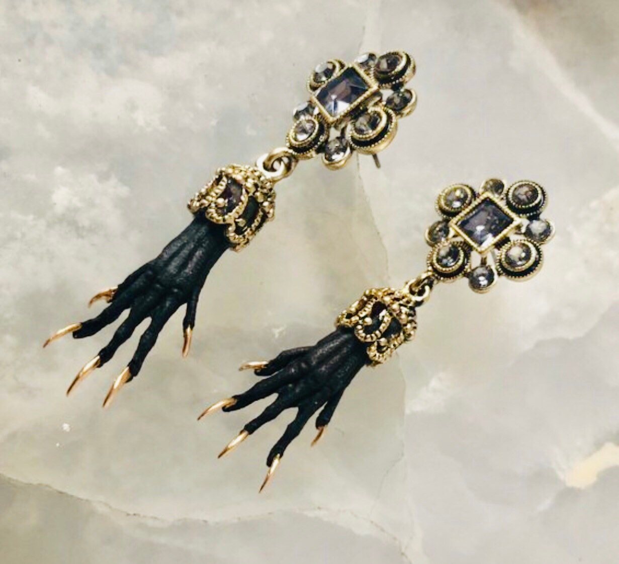 These stunning earrings feature authentic prairie dog paws with gold gilded nails that hang from victorian style earring hooks.
