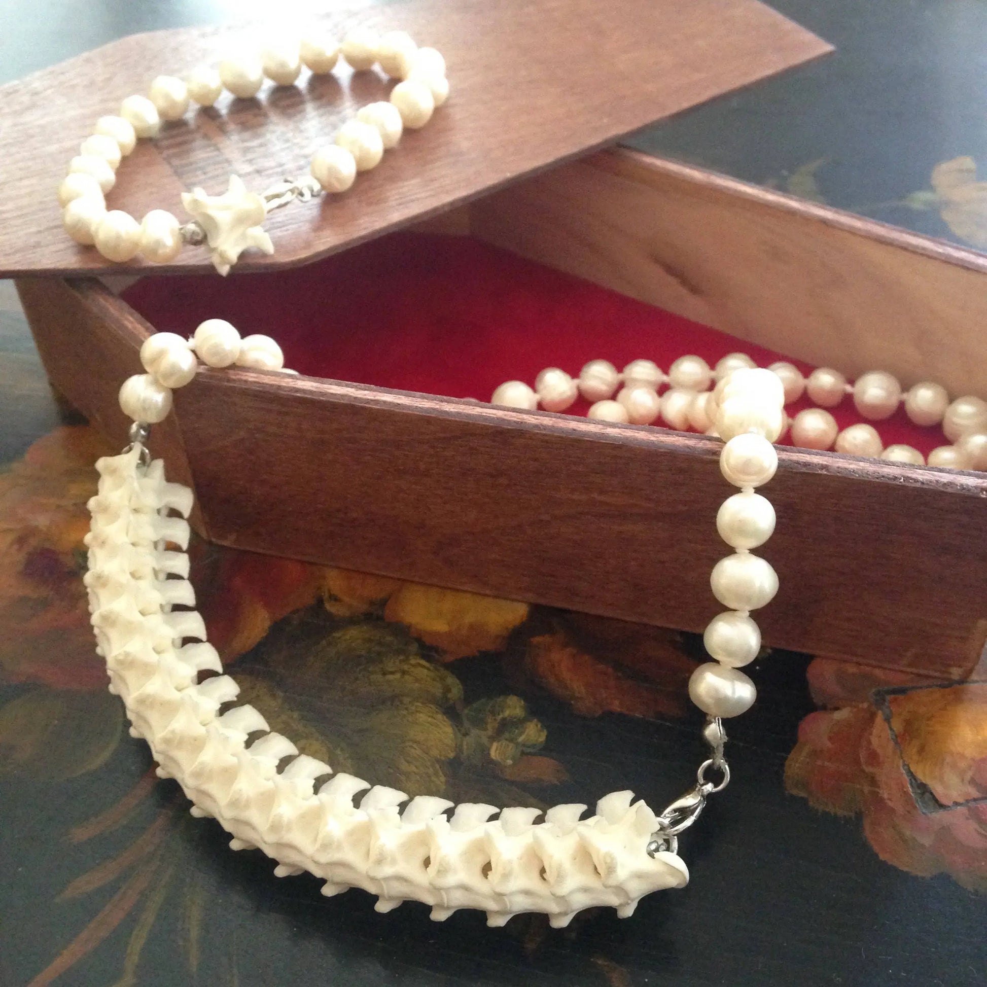 Python Vertebrae and Salt Water Pearl Jewelry Set
